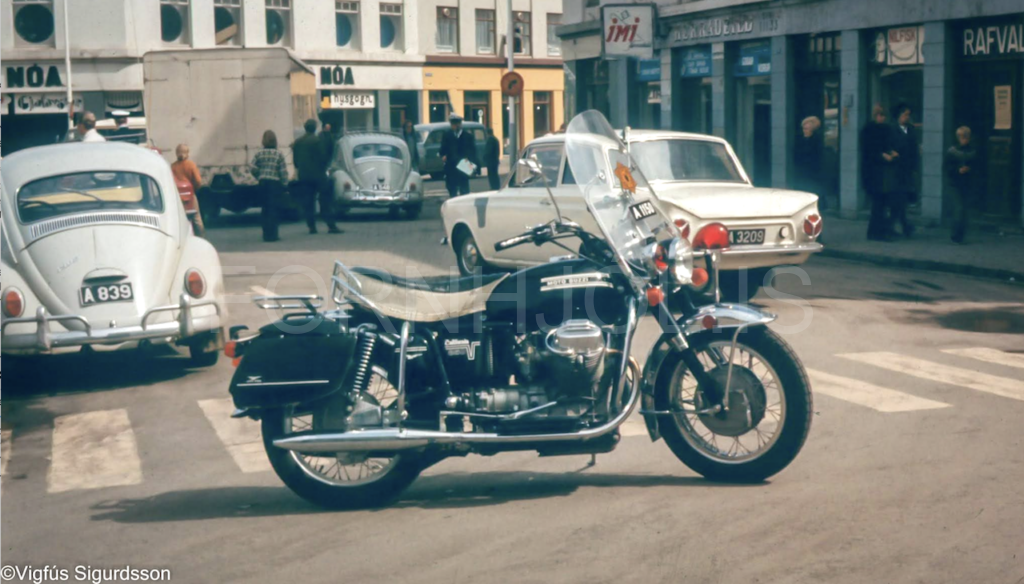 Á fésbókinni birstist nýlega flott litmynd af Moto Guzzi lögregluhjólinu þegar það var nýtt á Akureyri. Myndin er tekin af Vigfúsi Sigurðssyni og er hjólið í forgrunni en eitthvað umferðaróhapp fyrir aftan. varð myndin til þess að ég heyrði í fyrrum eiganda þess, Ólafi Unnari Jóhannssyni til að forvitnast um sögu hjólsins.